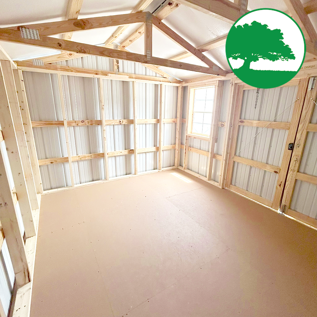 Features: 6′ Double Doors, 6’3″ Wall Height, 2′ x 3′ Aluminum Window w/ PVC Shutters, PVC Flower Box, Baked-On Enamel Metal Roofing w/ Bubble Wrap below, LP ProStruct Flooring w/ SmartFinish, Heavy Duty aluminum diamond plate threshold & FREE Delivery with blocks within 50 miles.