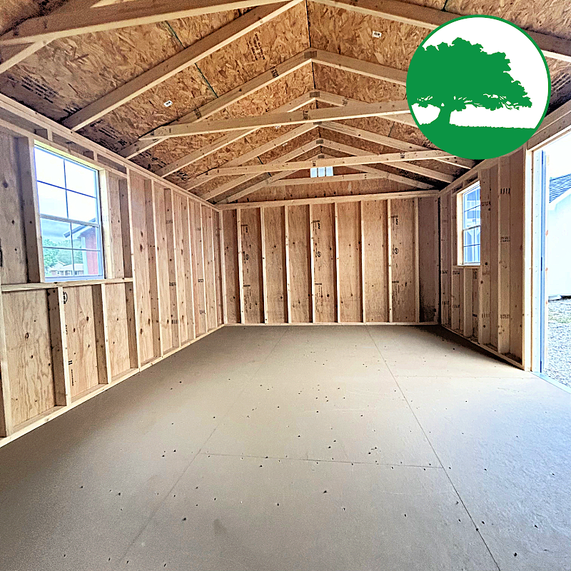 Features: Generous Roof Overhangs, 6’6″ Sidewall Height, Classic 5′ Double Doors, Double 12′ Shelf, (3) 24″ x 36″ Aluminum Windows w/ Shutters, 2″ x 4″ Floor Joists (12″ o.c.), Wall Studs (16″ o.c.), Rafters (24″ o.c.), DuraTemp Plywood Siding (50 Year Warranty), LP ProStruct Coated Flooring, 1/2″ OSB Roof Sheeting, Baked-On Enamel Metal (50 Year Warranty) & FREE Delivery with blocks within 50 miles.