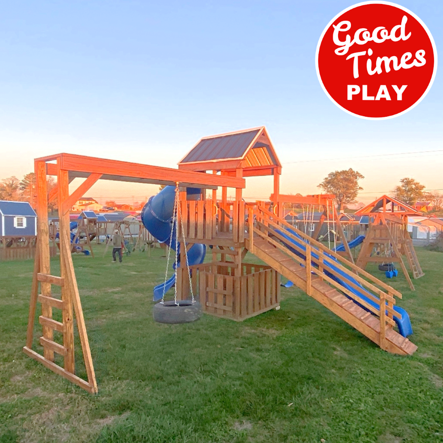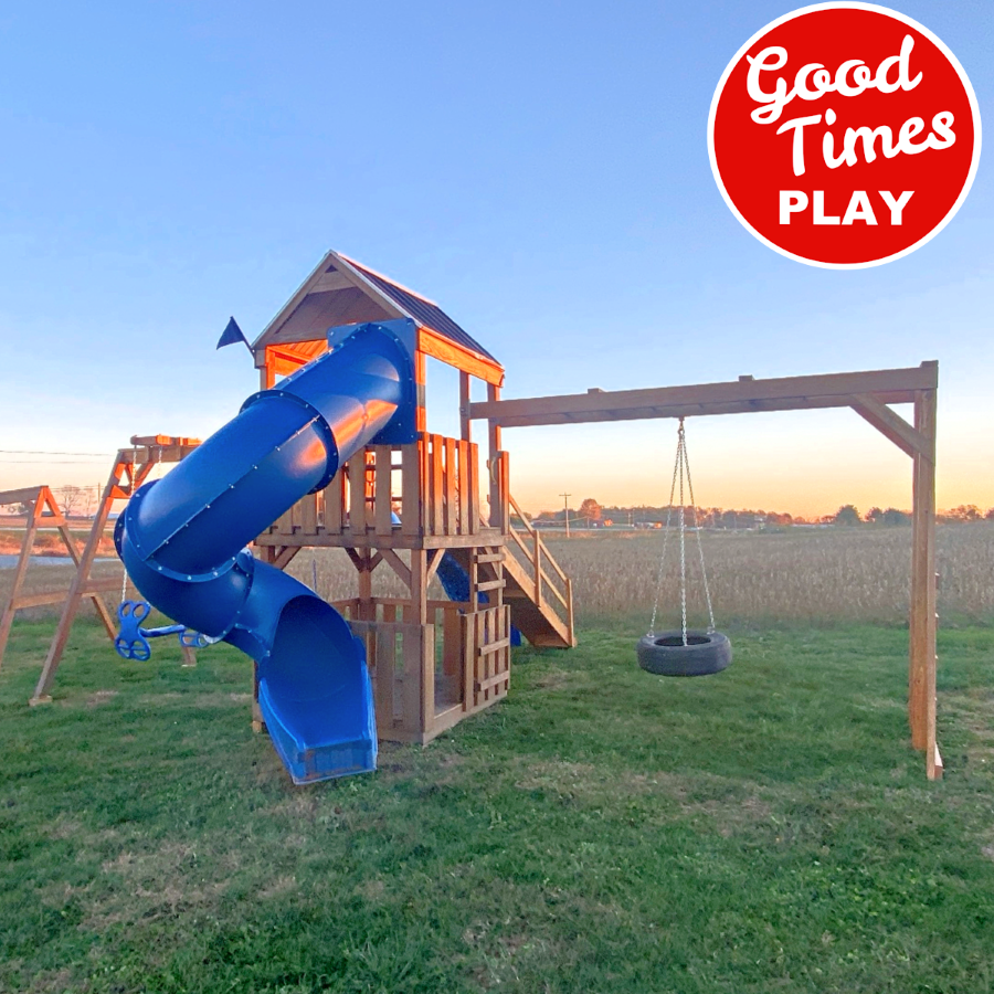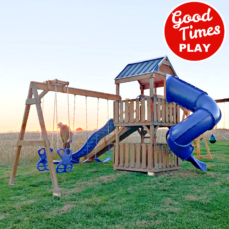 beams / accessories: 3 position swing beam with (2) belt swings & ez ryder (2-kid swing), separate monkey bar with tire swing