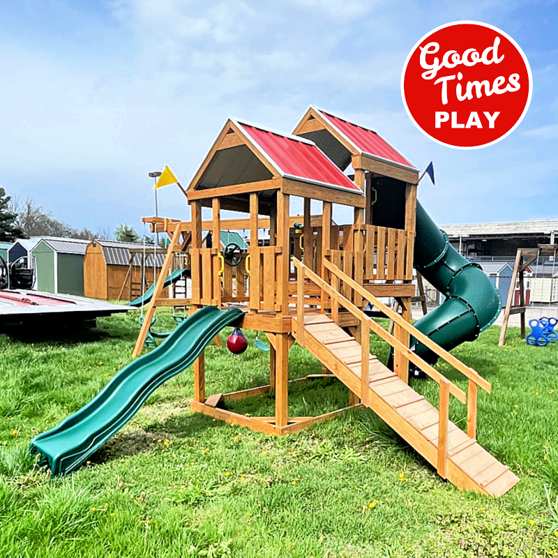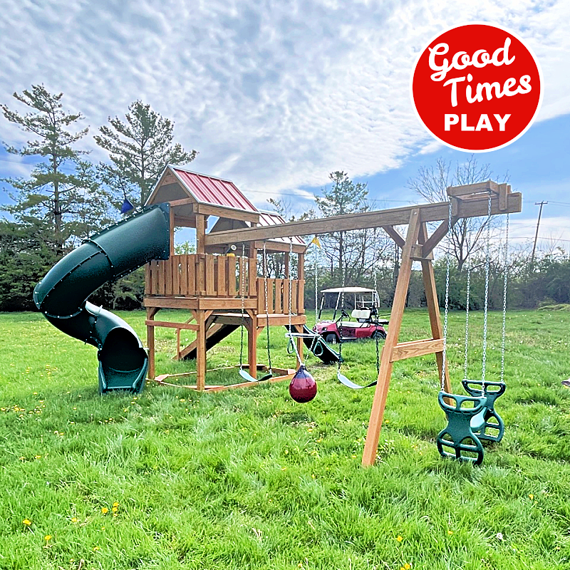 beams / accessories: 4 position swing beam with (2) belt swings, surf swing & ez ryder (2-kid swing)
