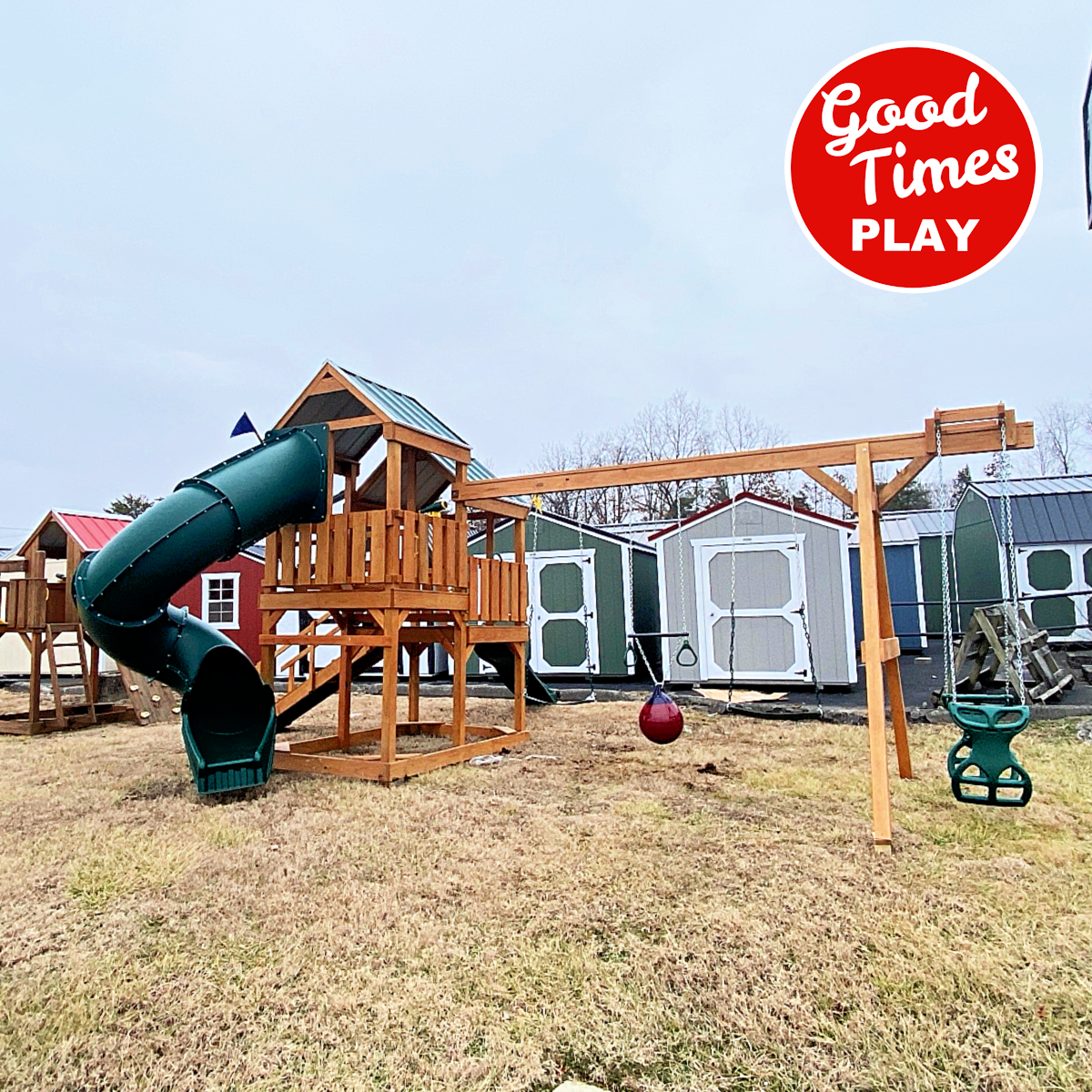 beams / accessories: 4 position swing beam with (2) belt swings, buoy ball & ez ryder (2-kid swing)