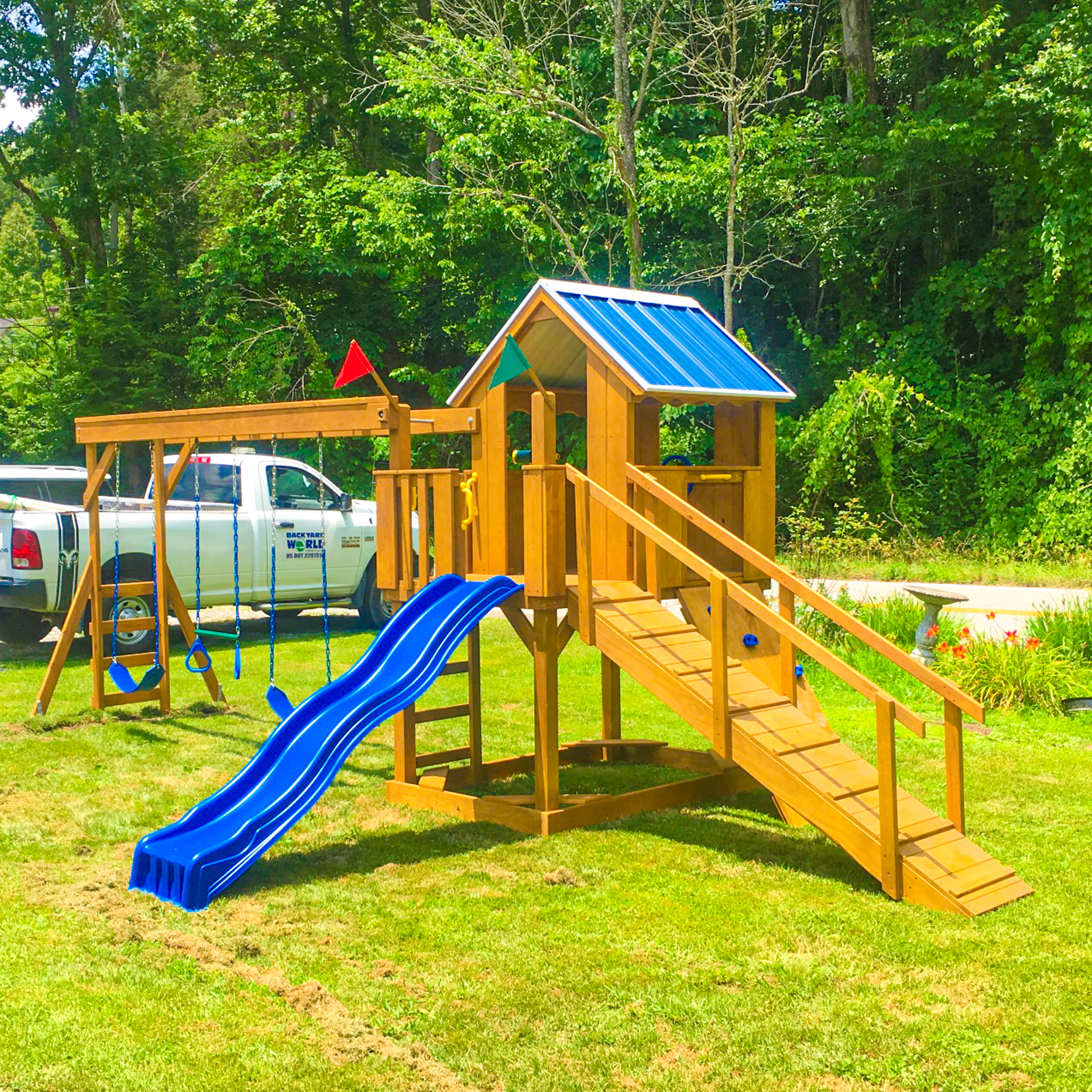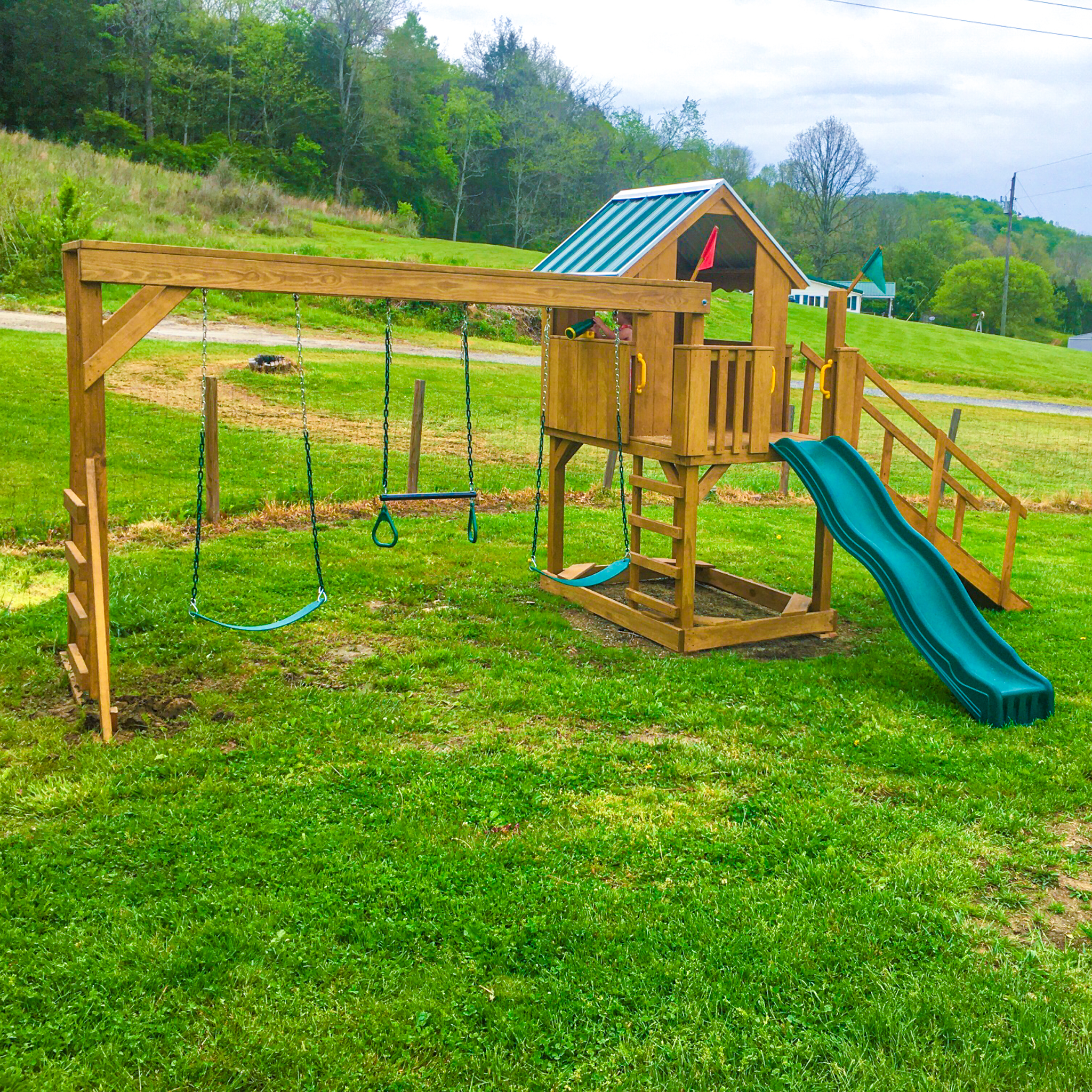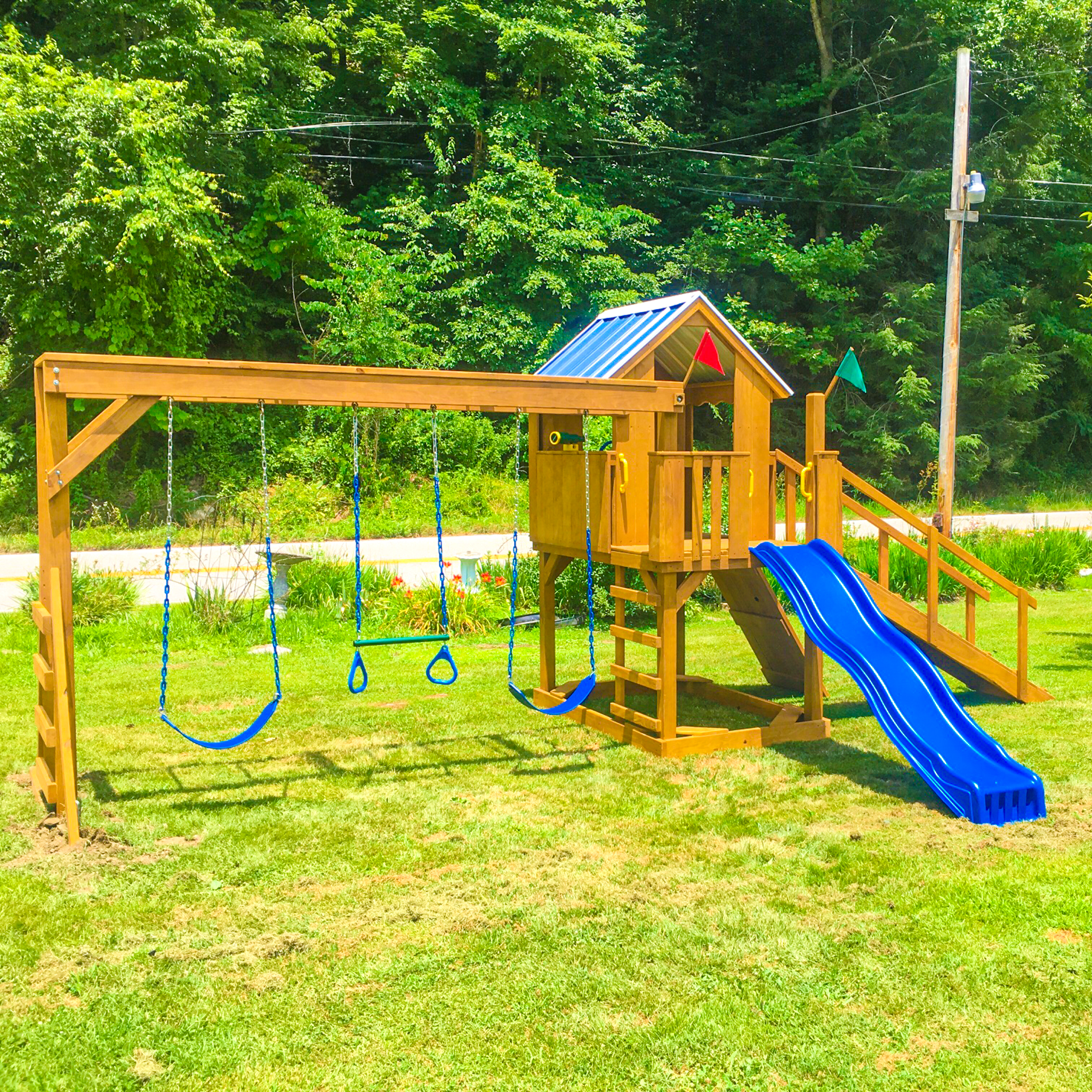 3 position monkey bar swing beam (Swings: belt swing x2, trapeze bar with rings)