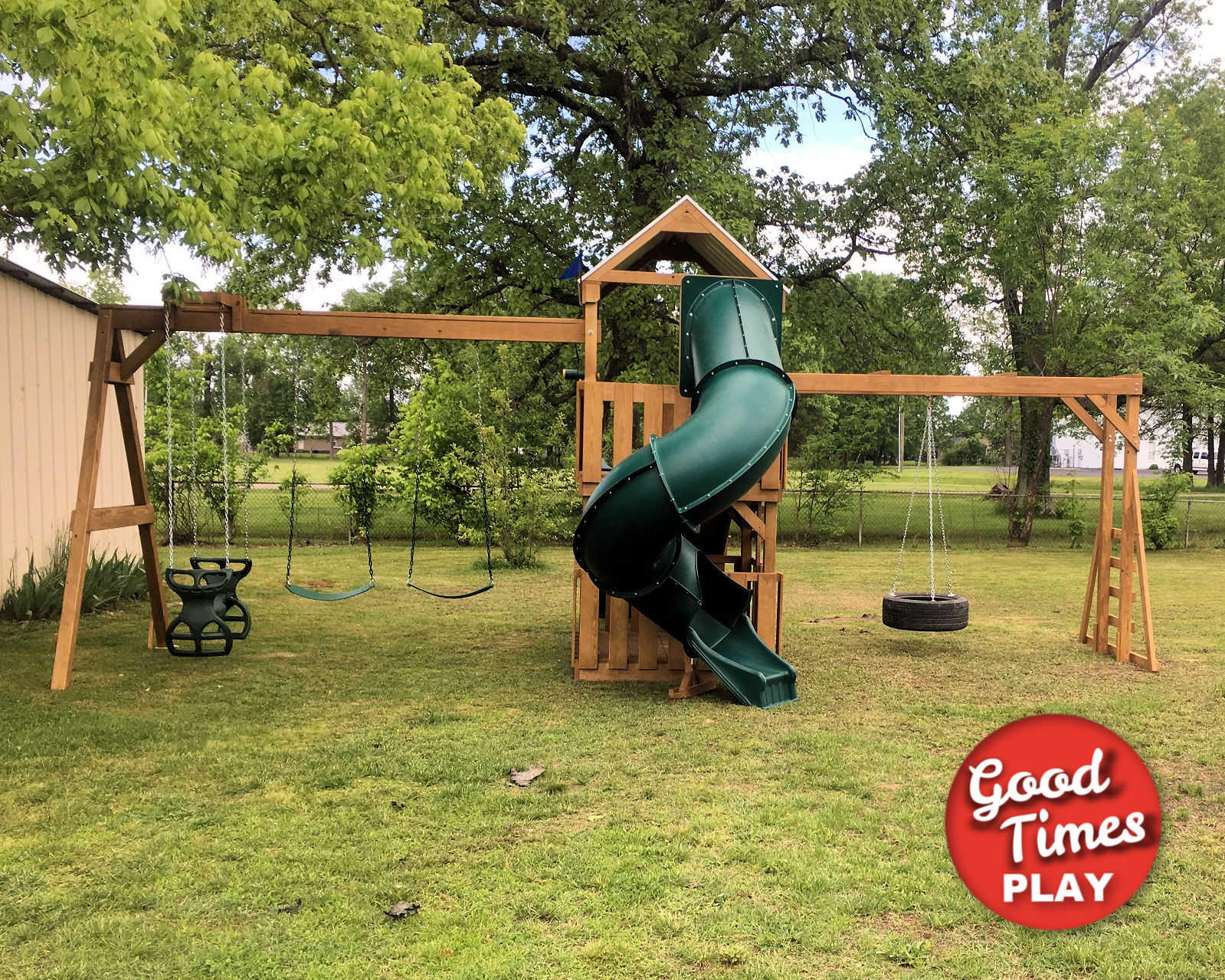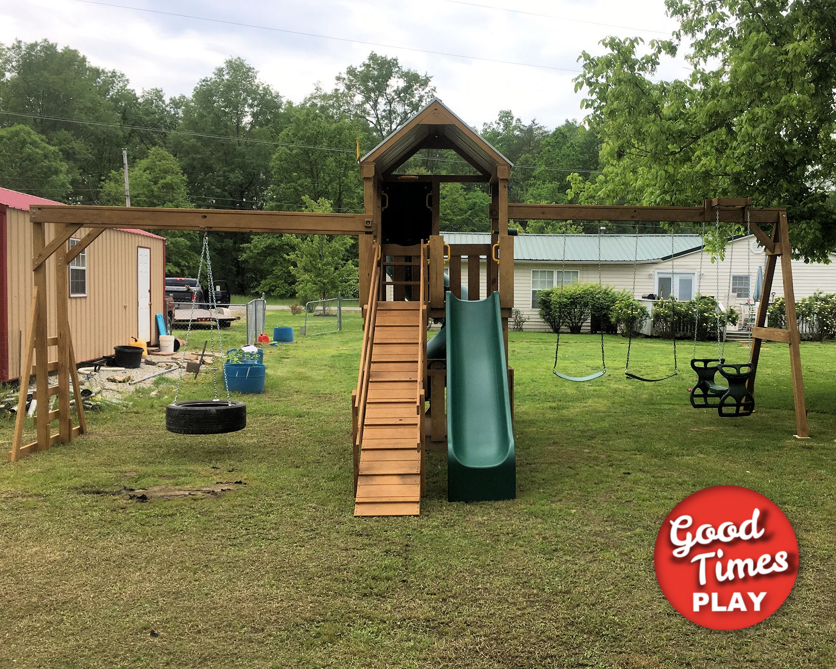 | Beams | 3 position monkey bar swing beam (Swings: tire swing (two positions), empty) |