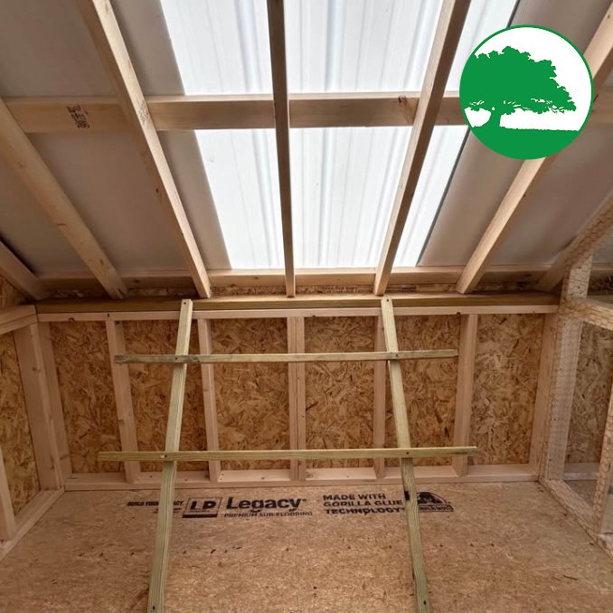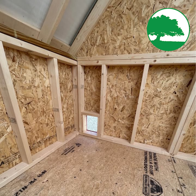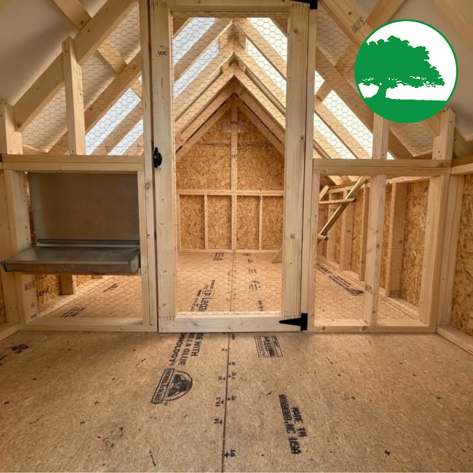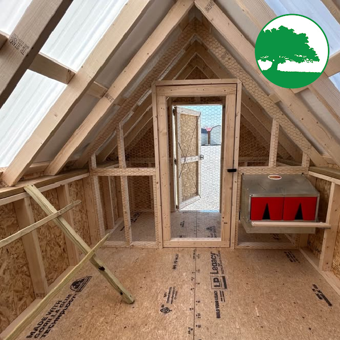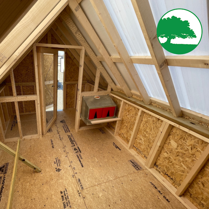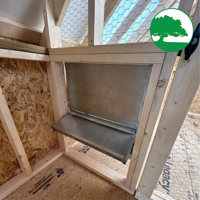 Includes: -Wood Man Door -Automatic Chicken Door -Enclosed Area -Nesting Boxes -Roosting Bar -Skylight Panels