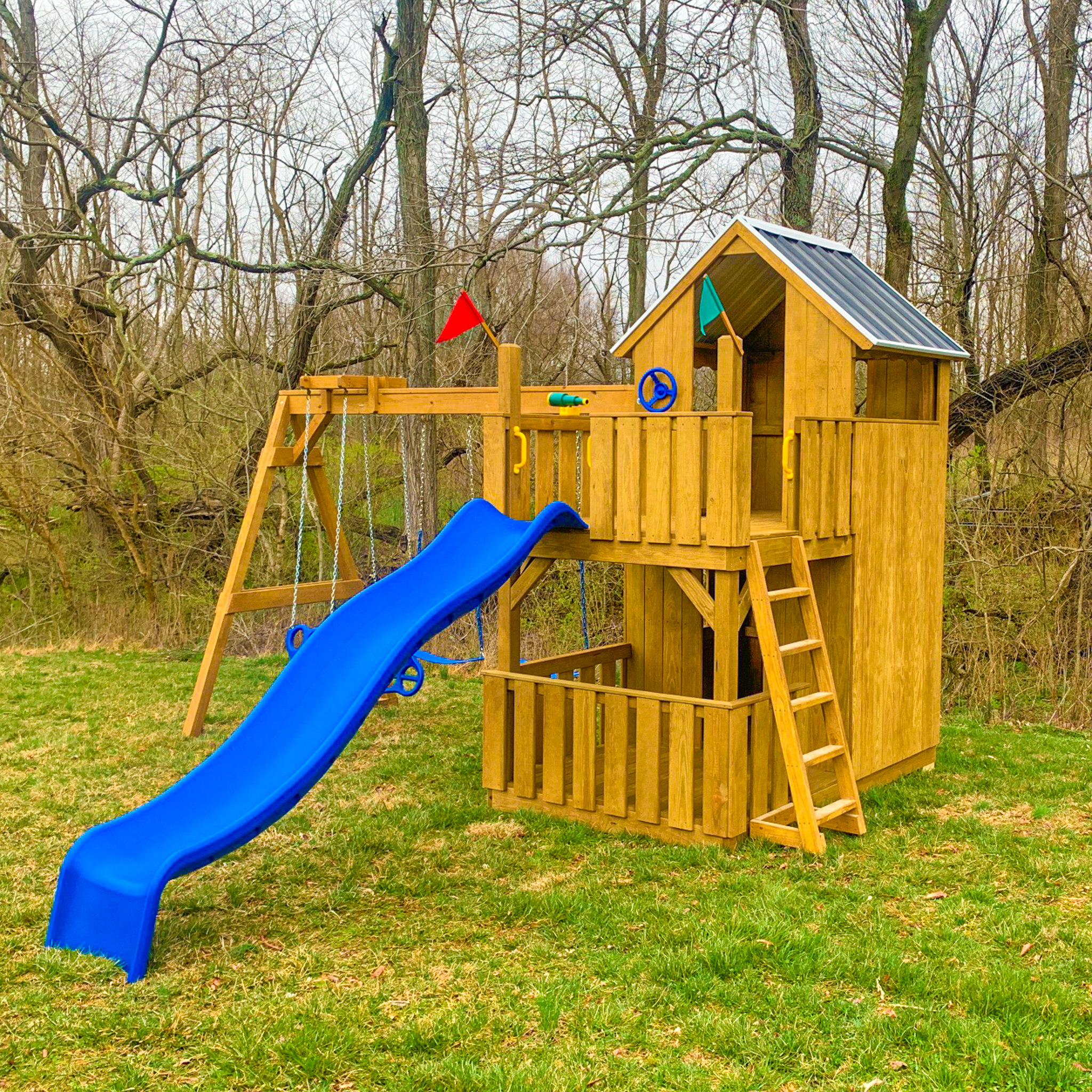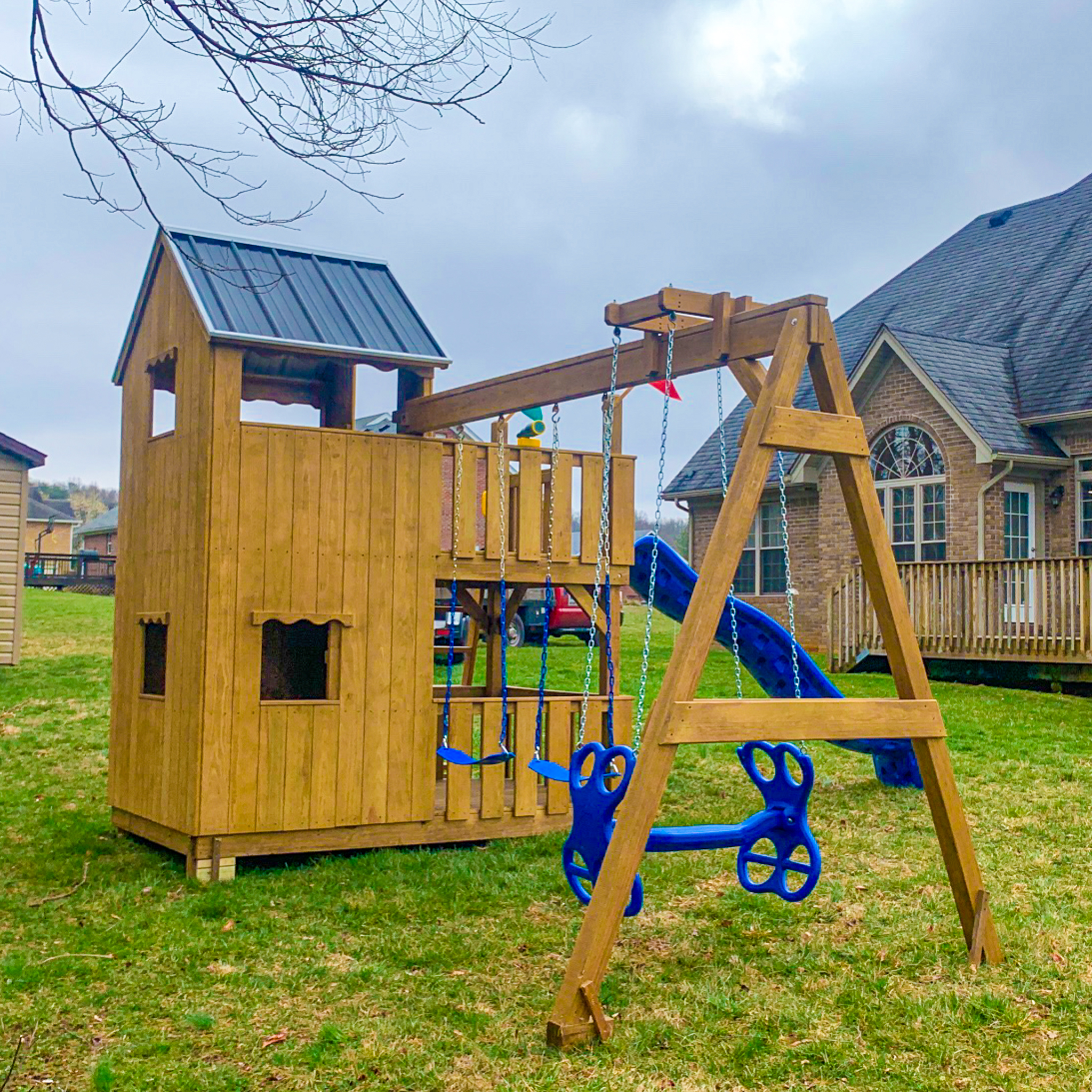 3 position swing beam (Swings: belt swing x2, ez ryder (2-kid swing))