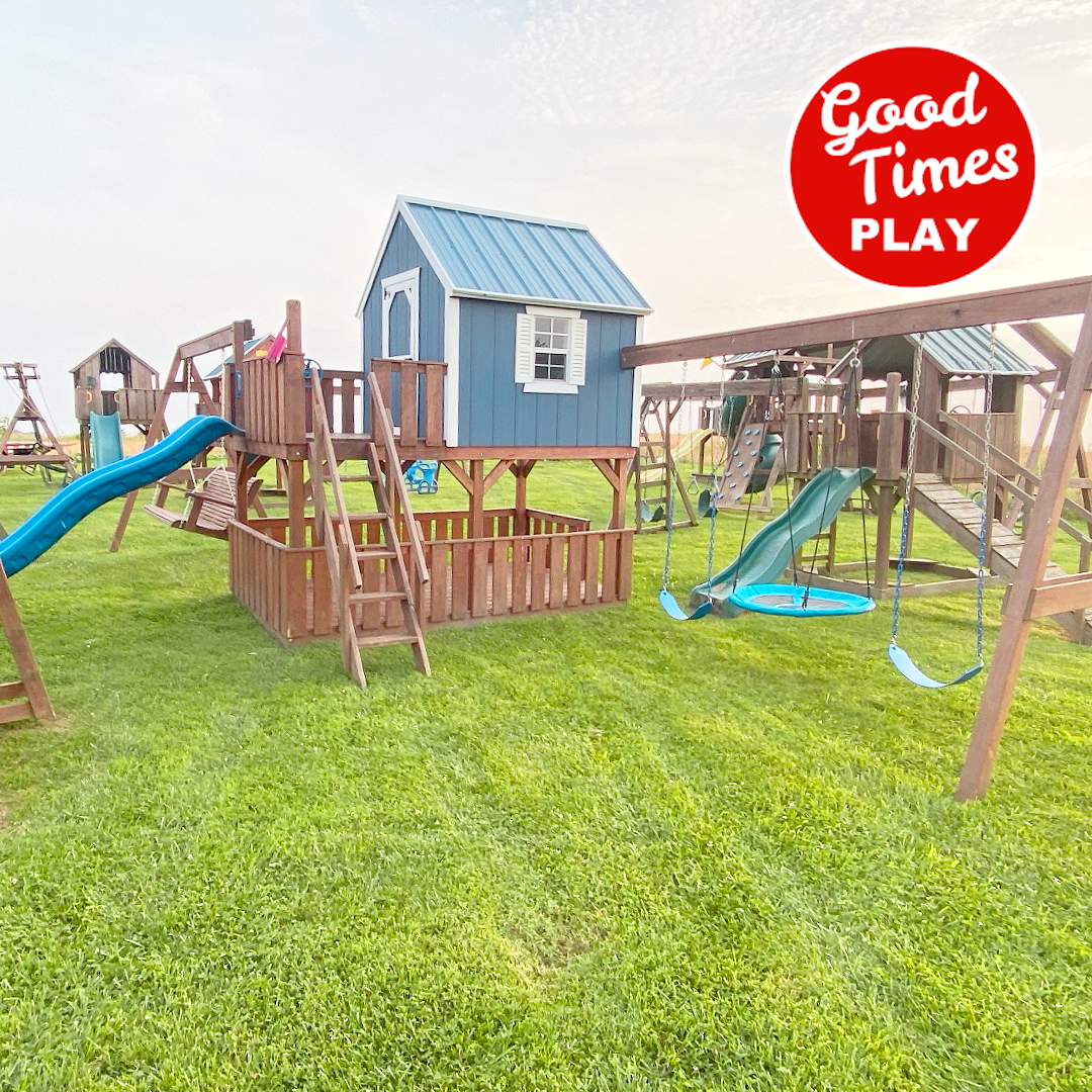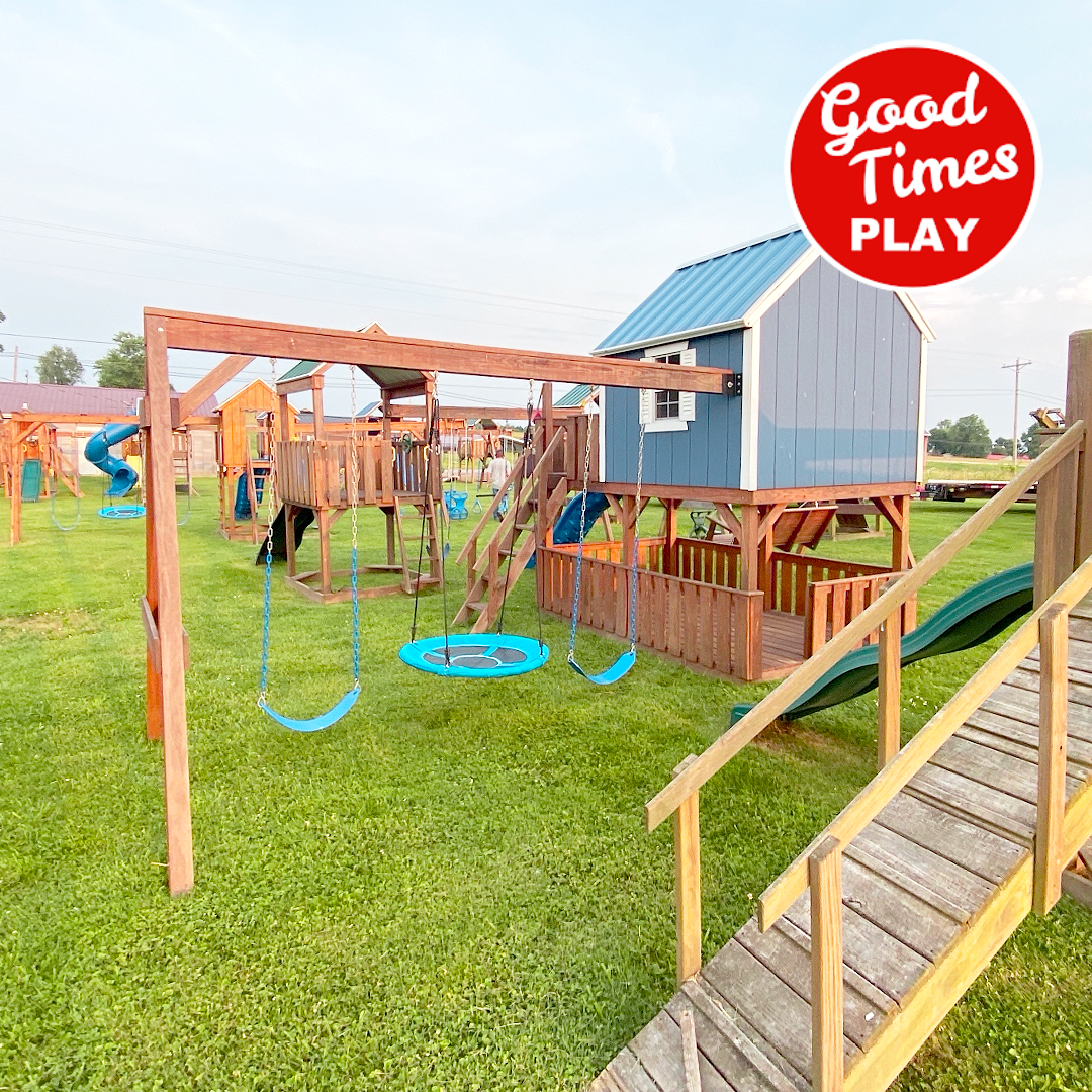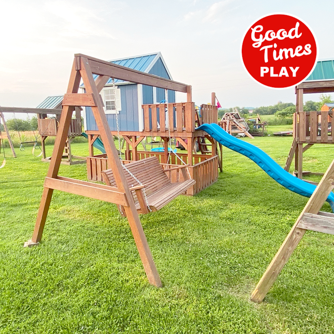 beams / accessories: 3 position swing beam with (2) belt swings & web swing, additional beam with 5ft adult swing