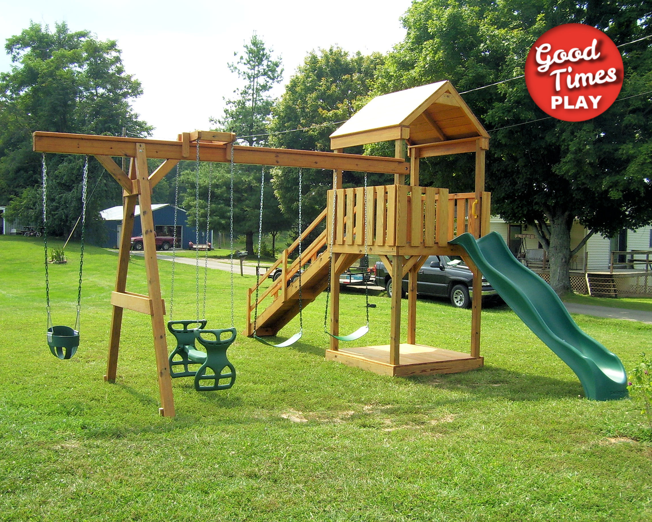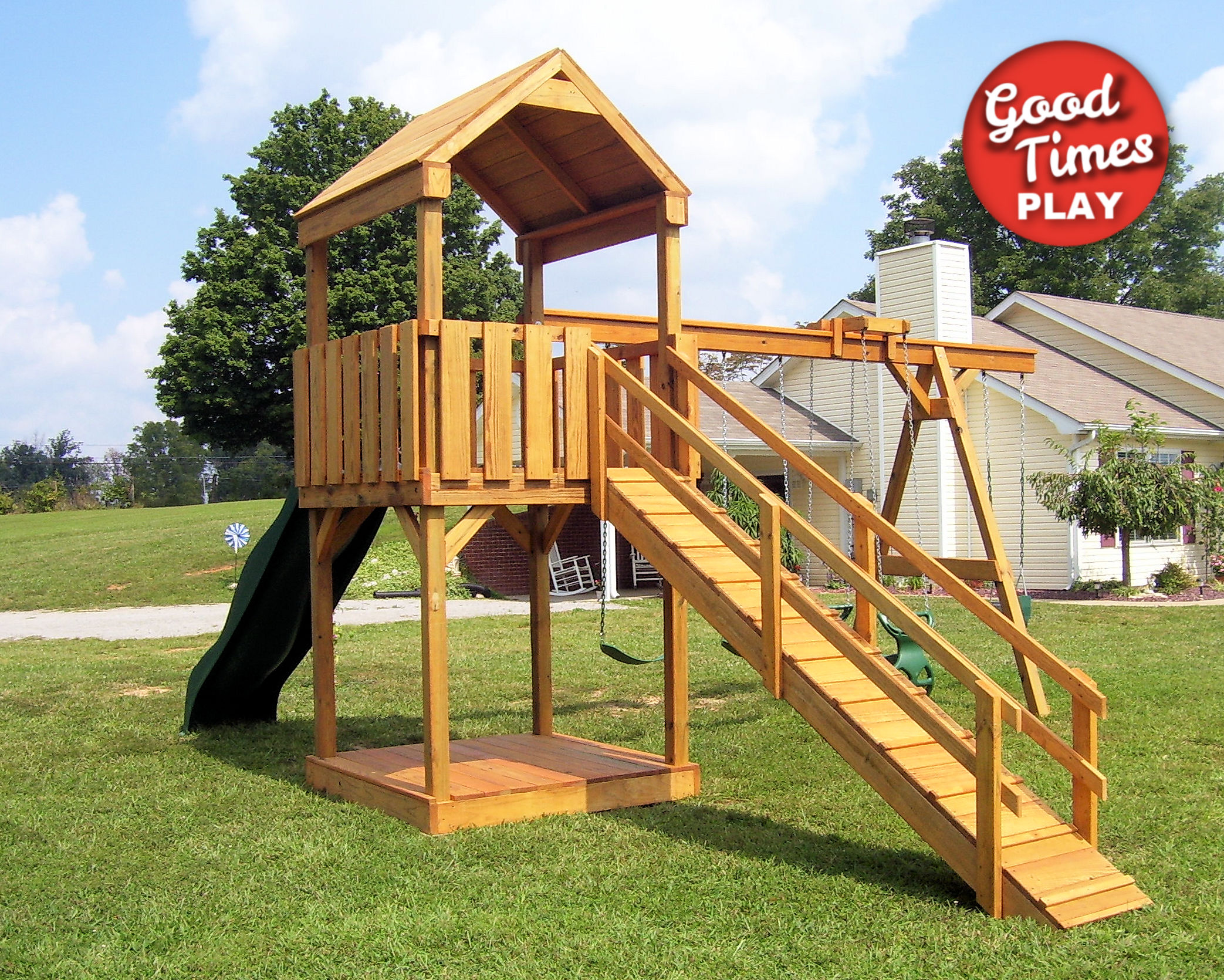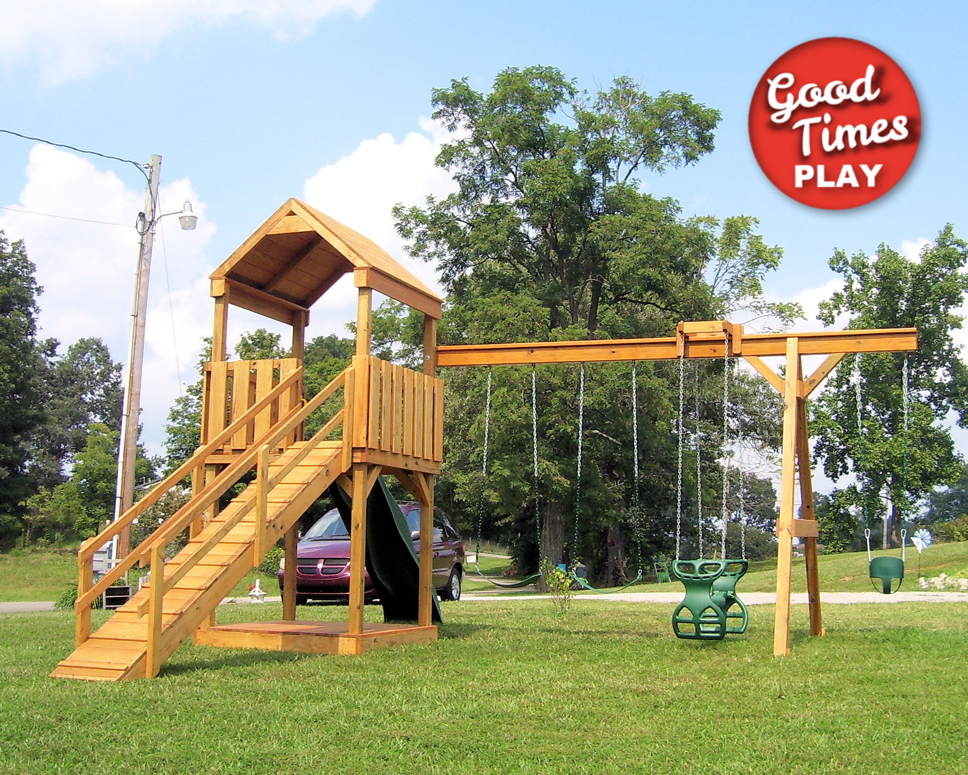 | Beams | 4 position swing beam (Swings: belt swing x2, toddler swing, ez ryder (2-kid swing)) |