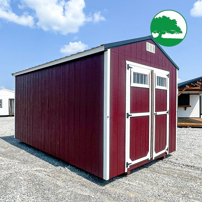 Features: Double Entry Doors, 8′ TALL Walls, 3-Tier OSB Shelving (16″ deep), LP SmartSide Siding (50 Year Warranty)
